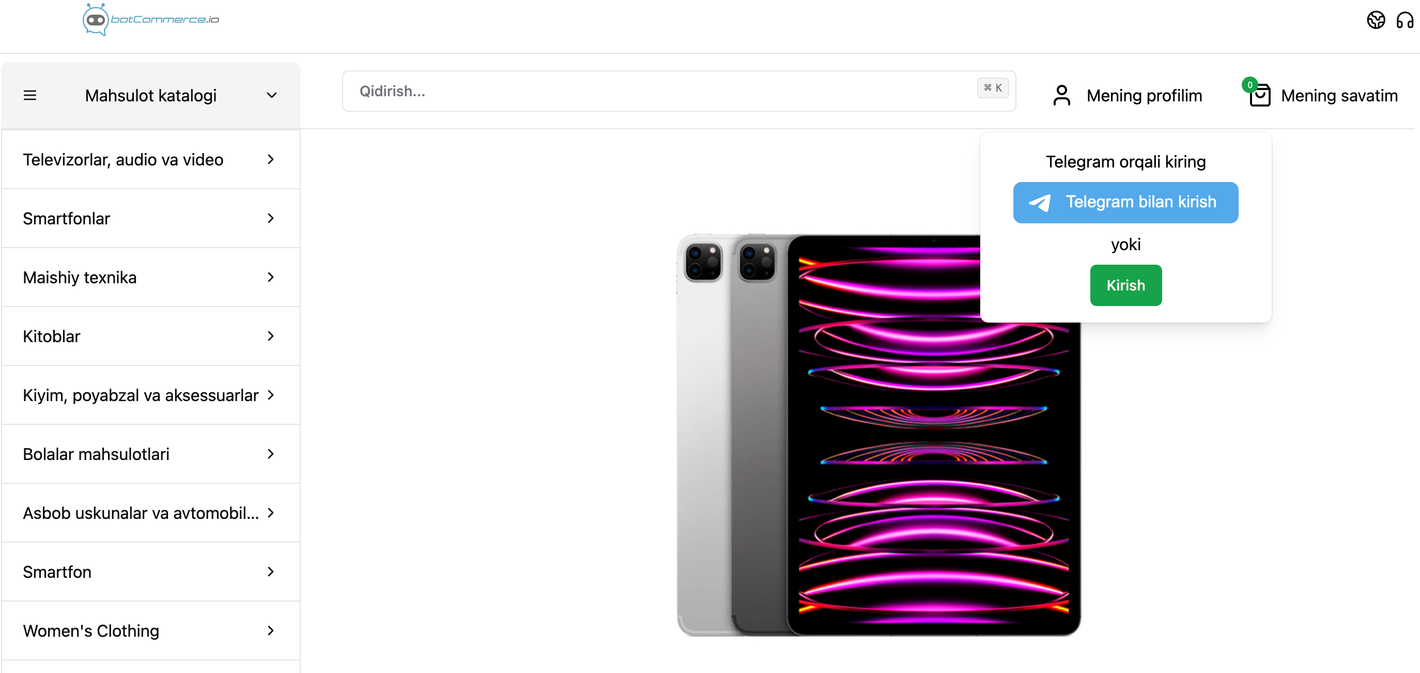 Botcommerce do’koningizning linkini yuboring. Misol uchun: myshop.botcommerce.io